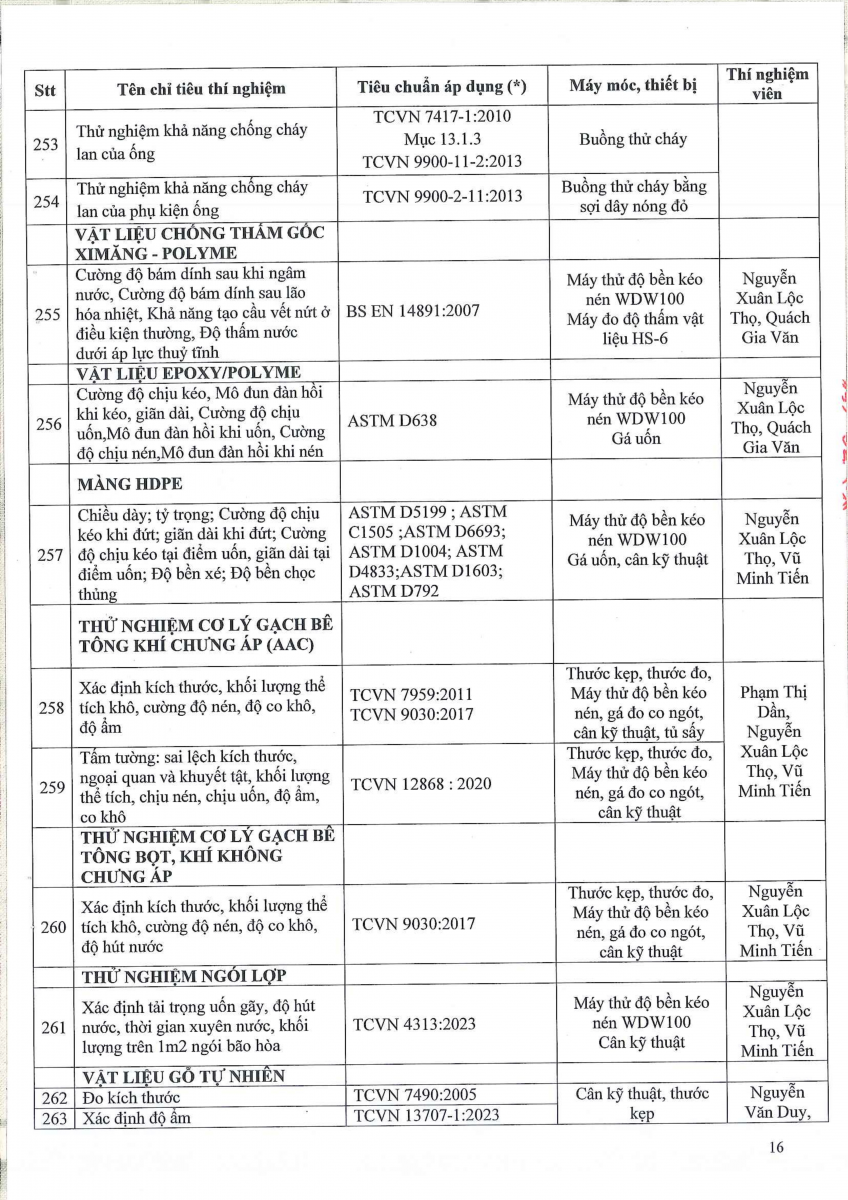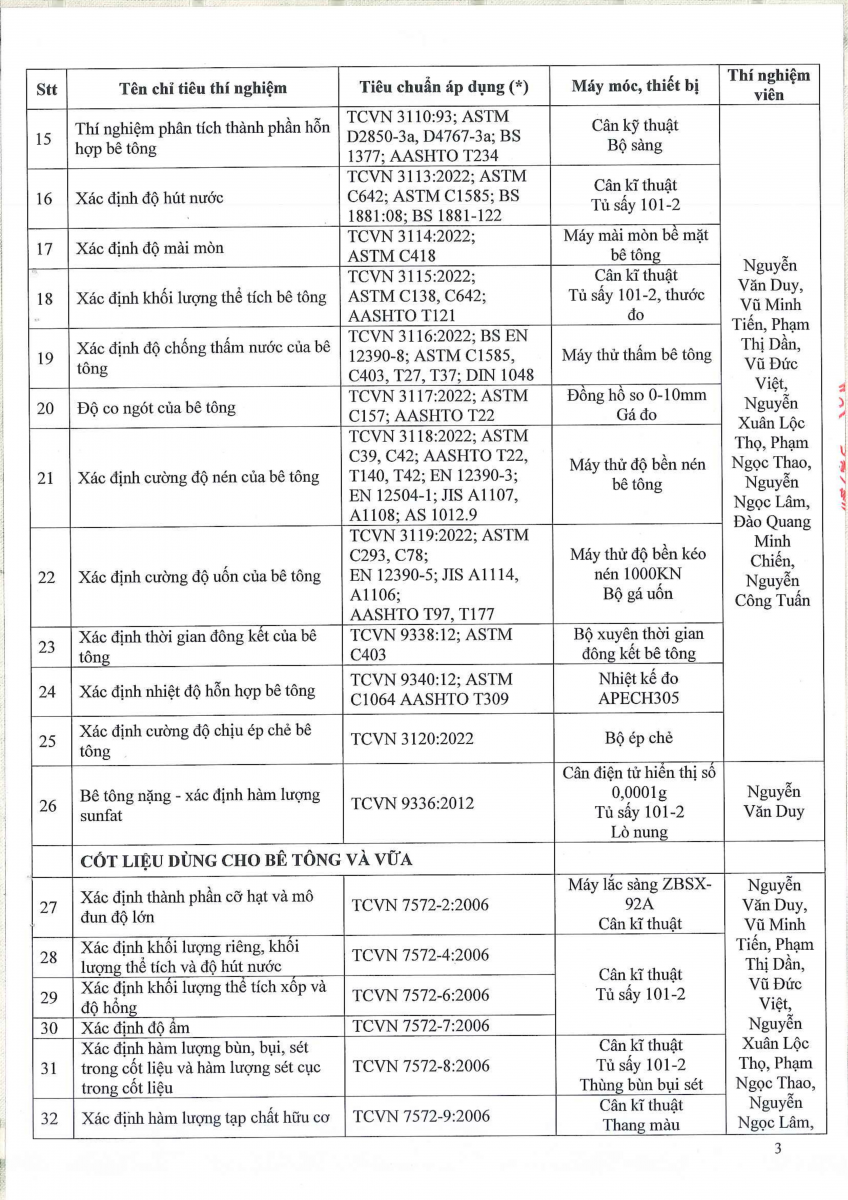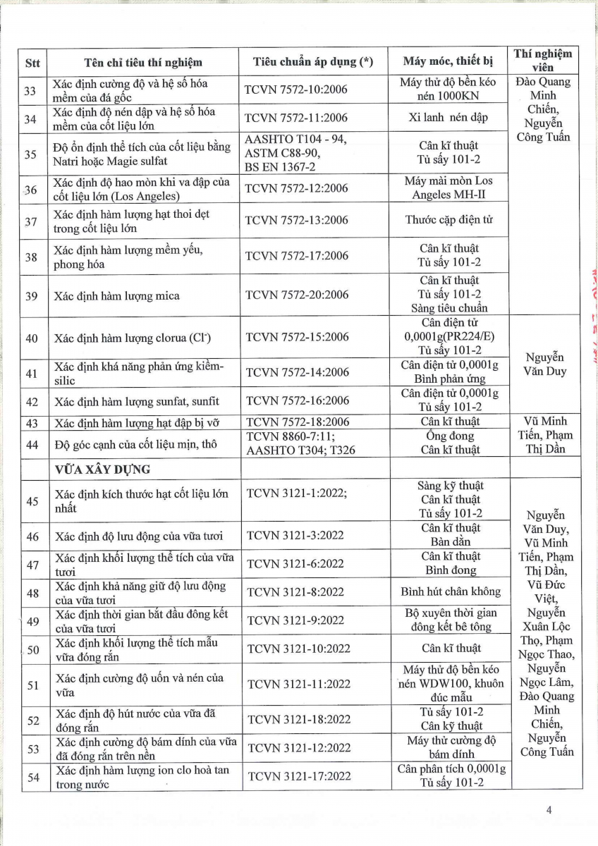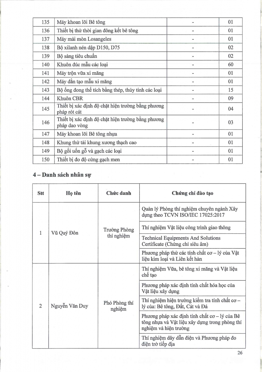 Công bố thông tin về năng lực đủ điều kiện hoạt động thí nghiệm chuyên ngành xây dựng