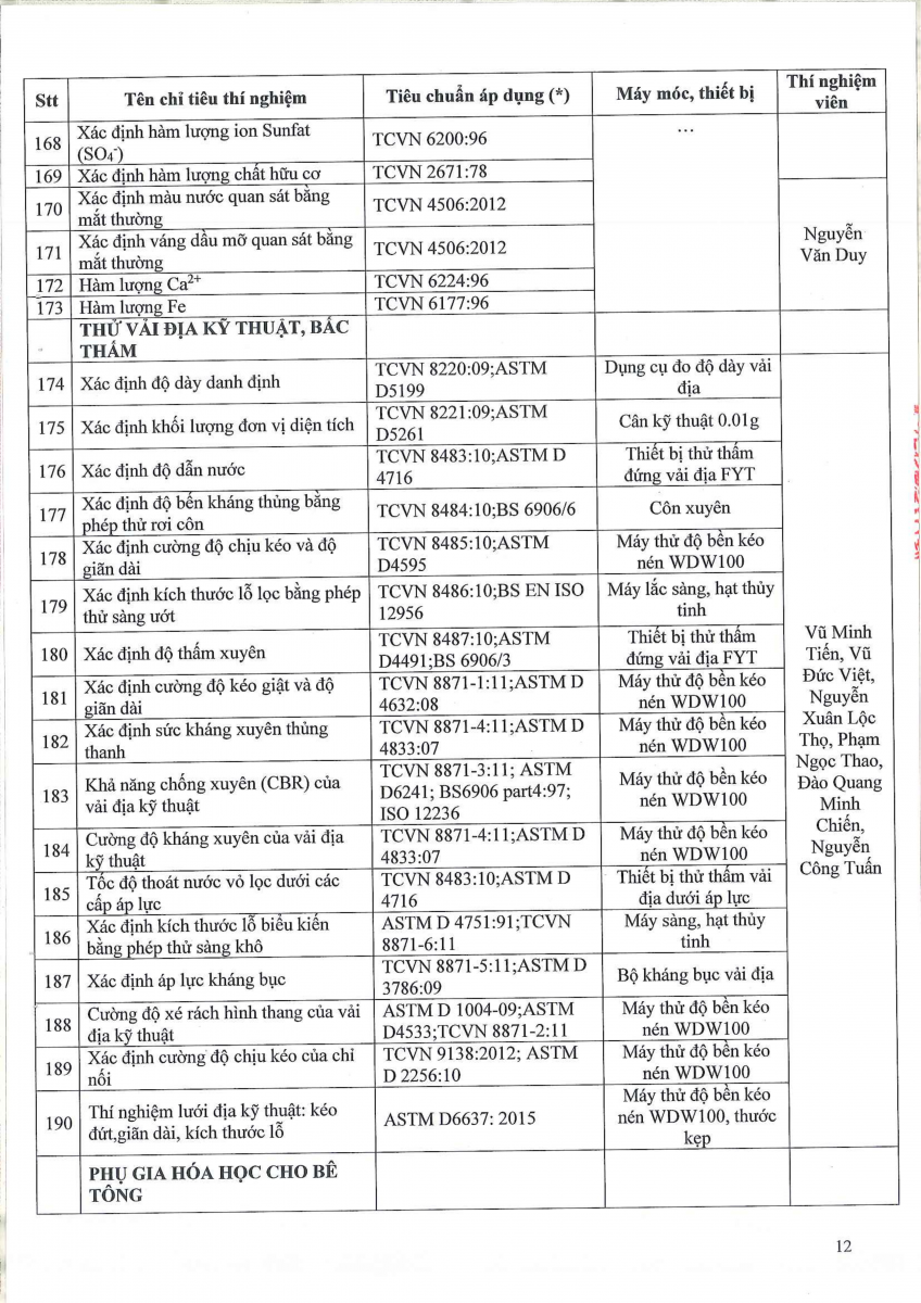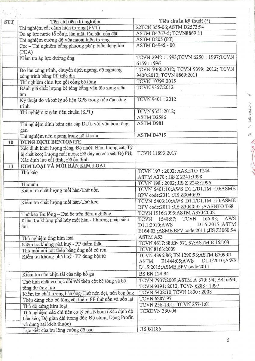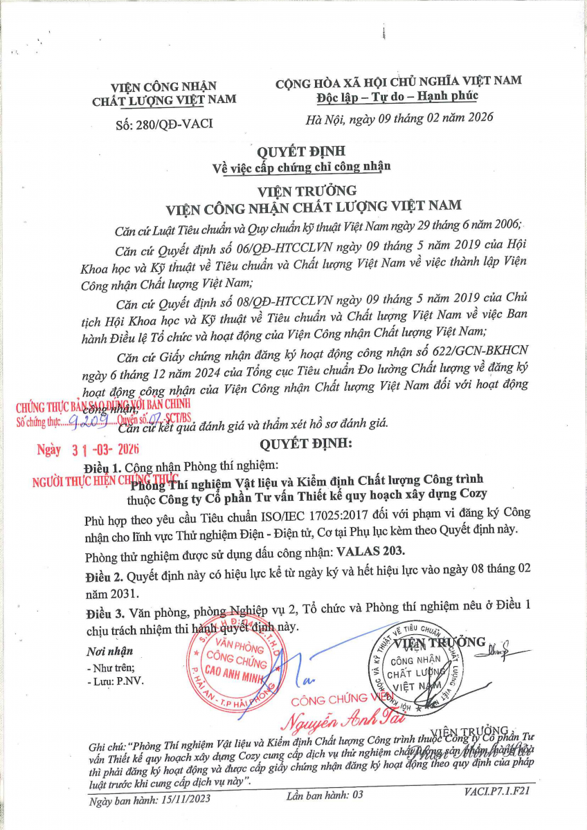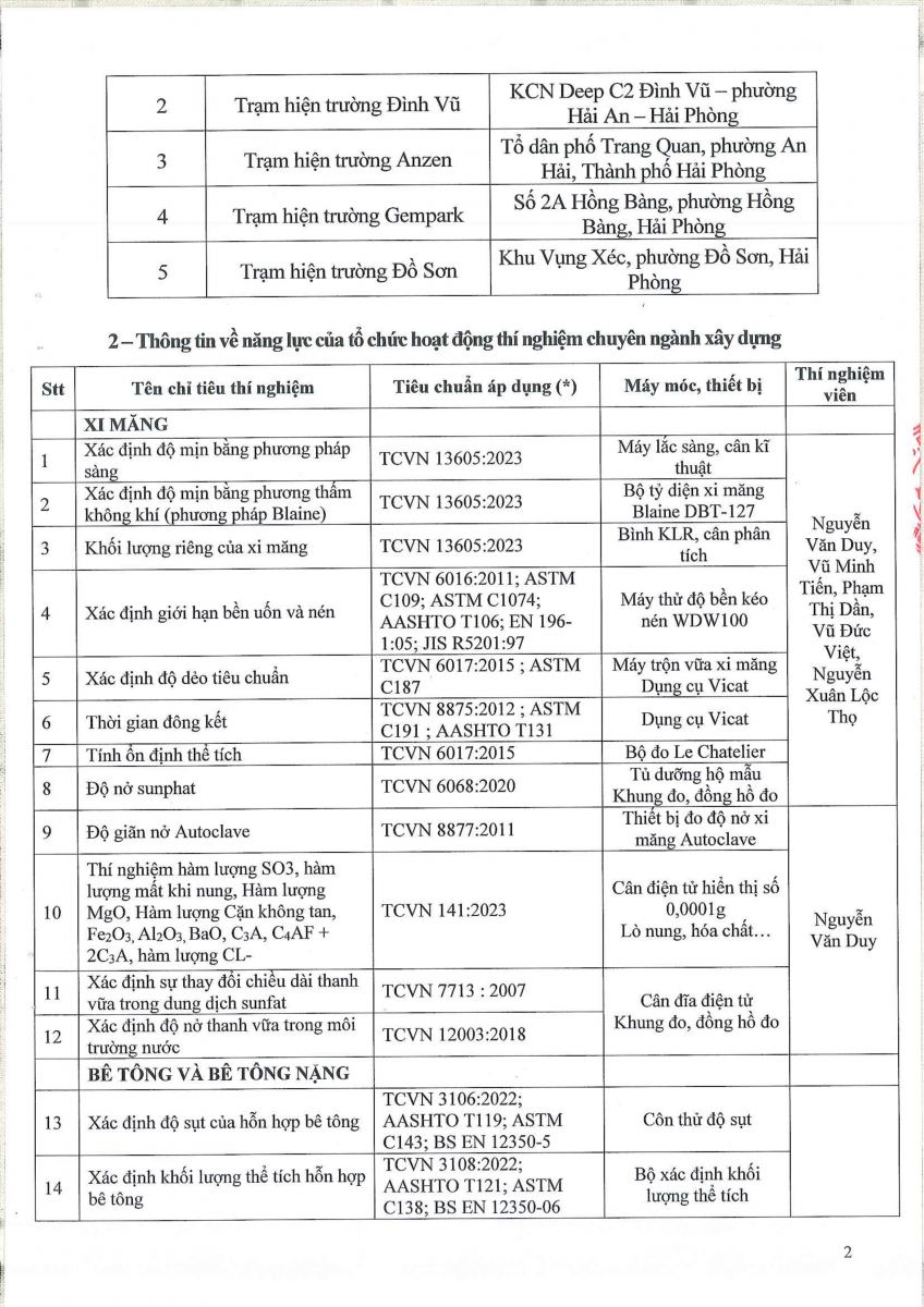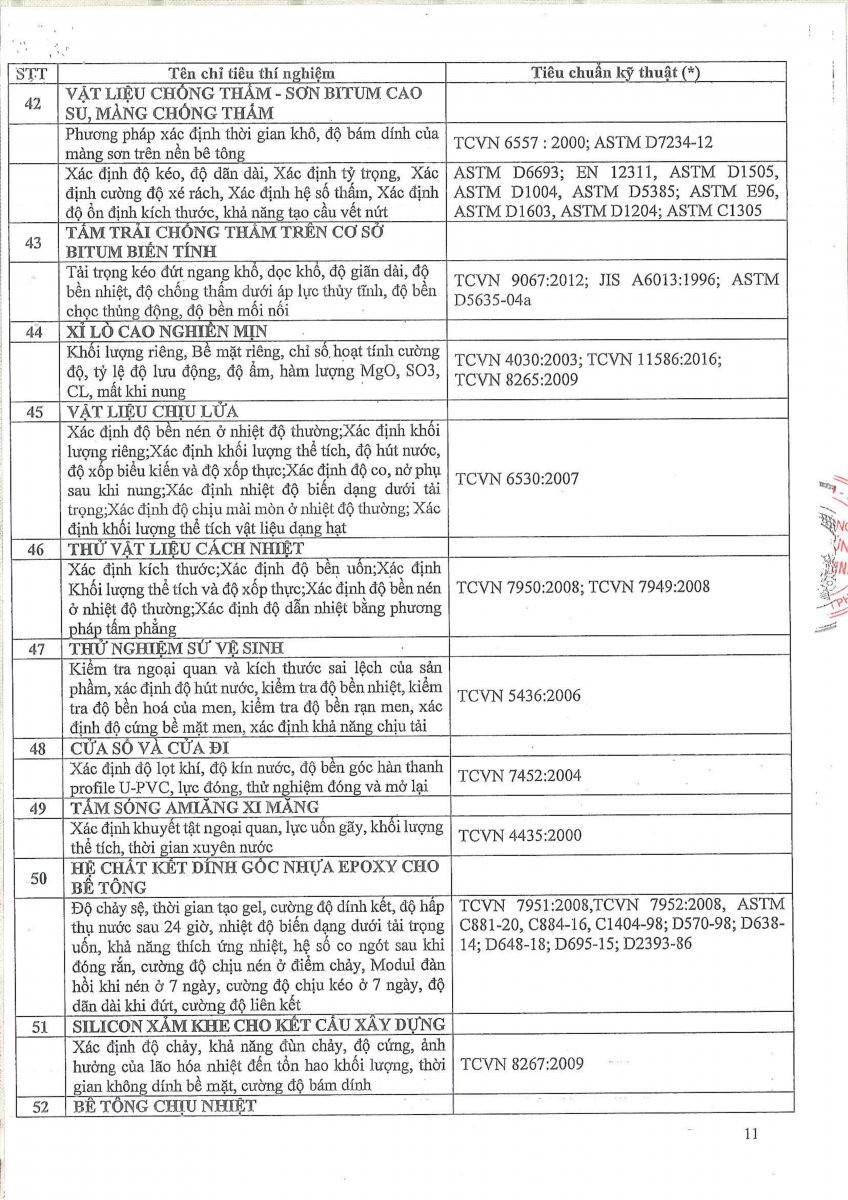 Công bố thông tin về năng lực đủ điều kiện hoạt động thí nghiệm chuyên ngành xây dựng
