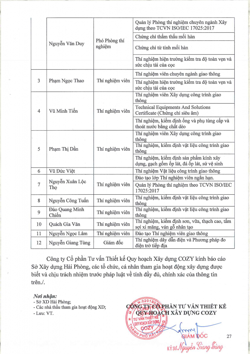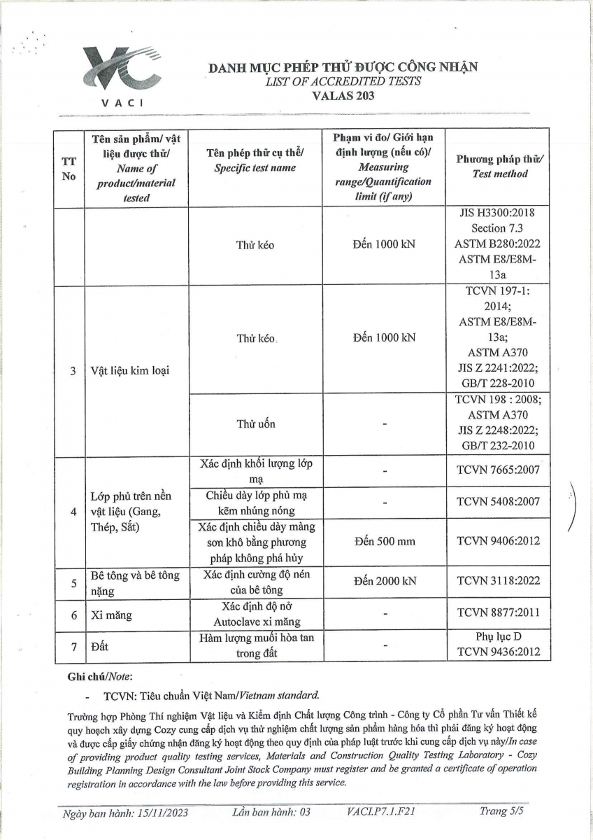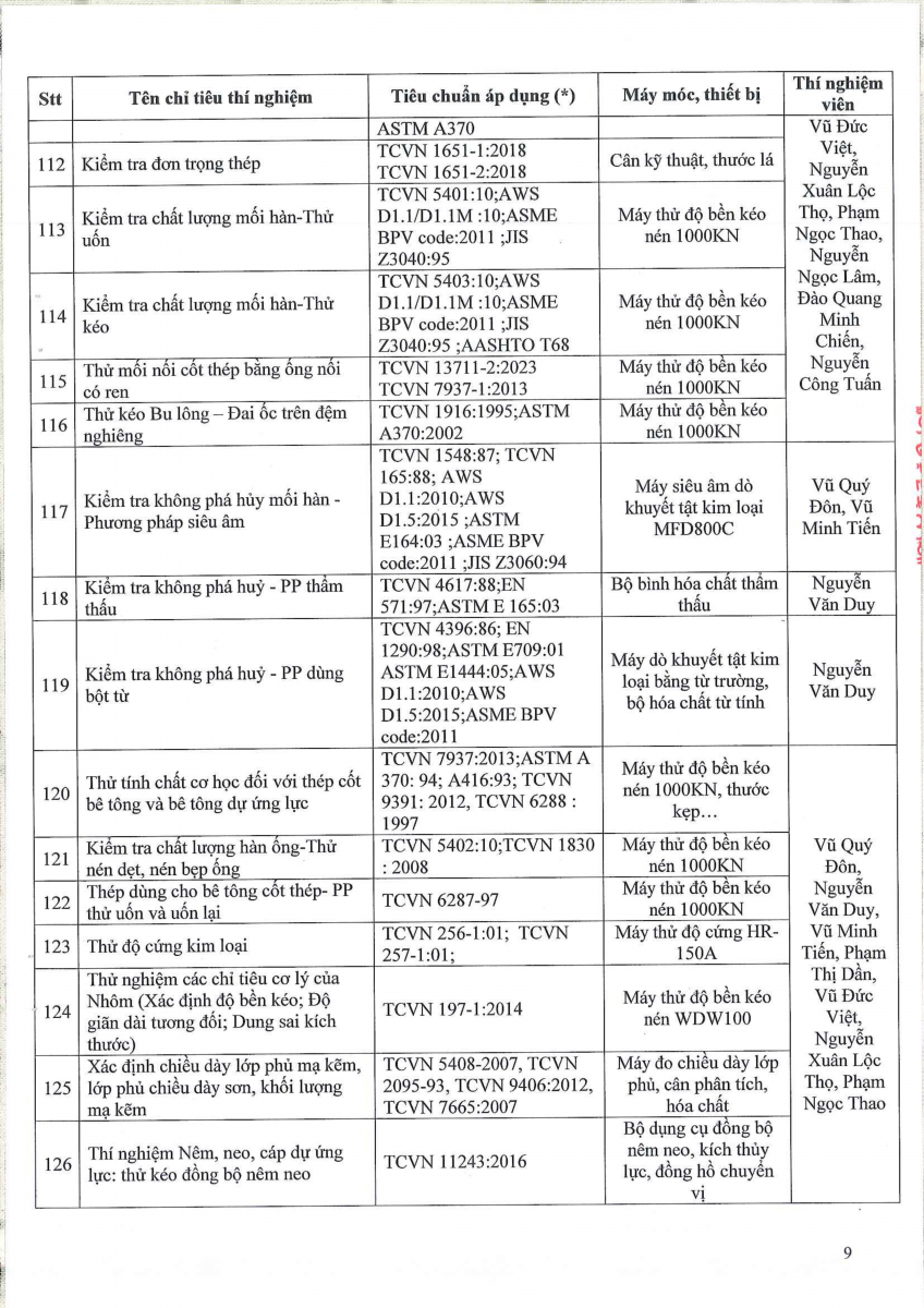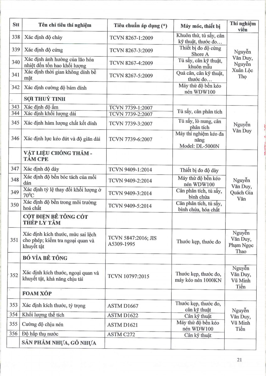 Công bố thông tin về năng lực đủ điều kiện hoạt động thí nghiệm chuyên ngành xây dựng