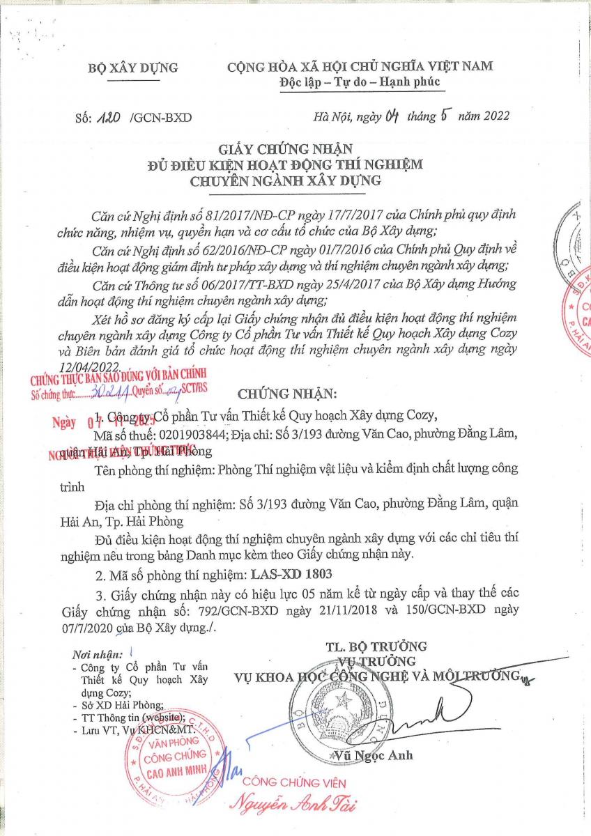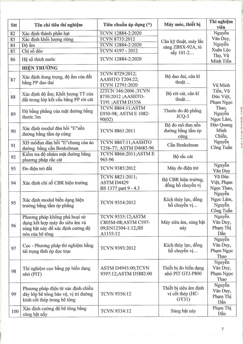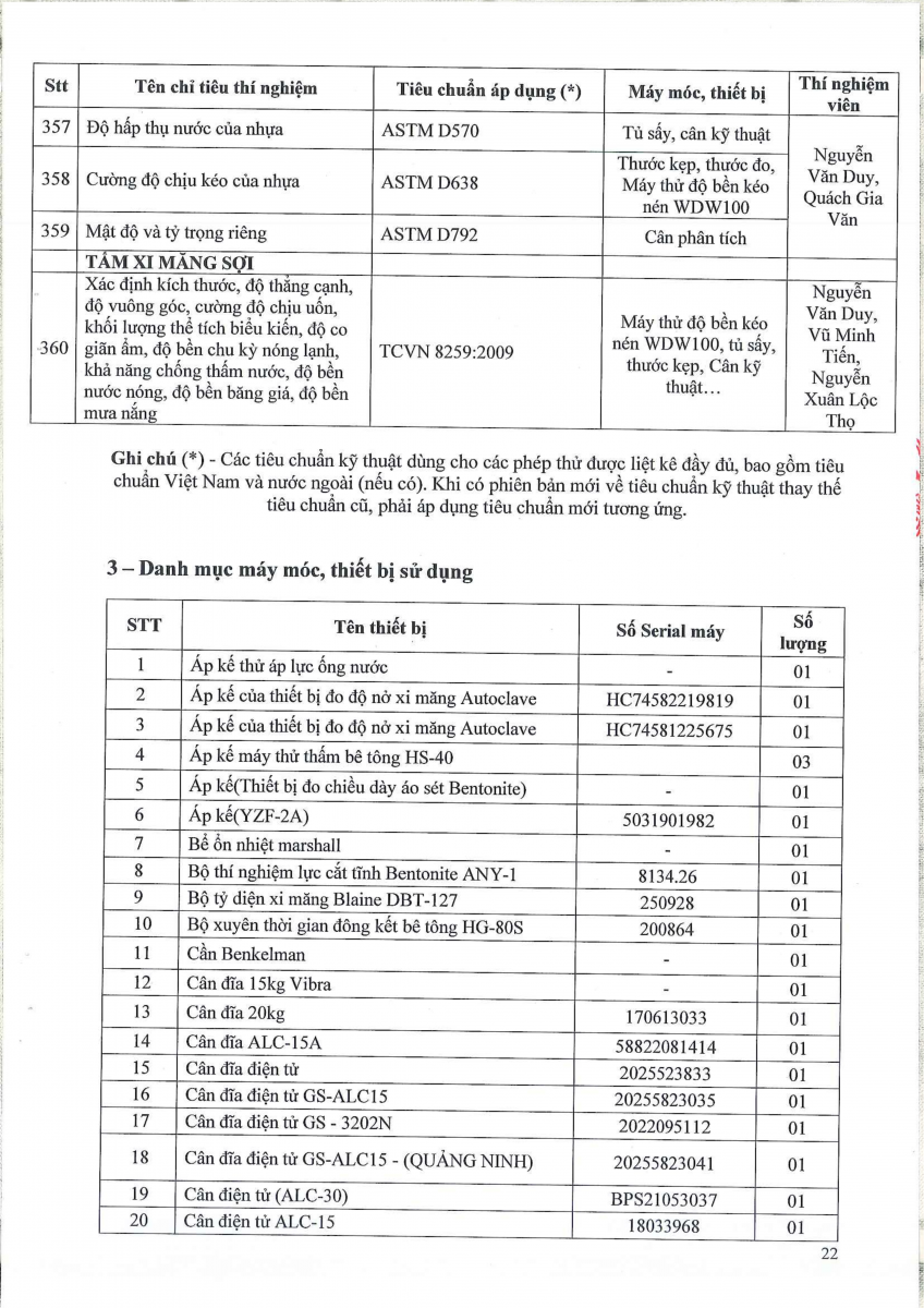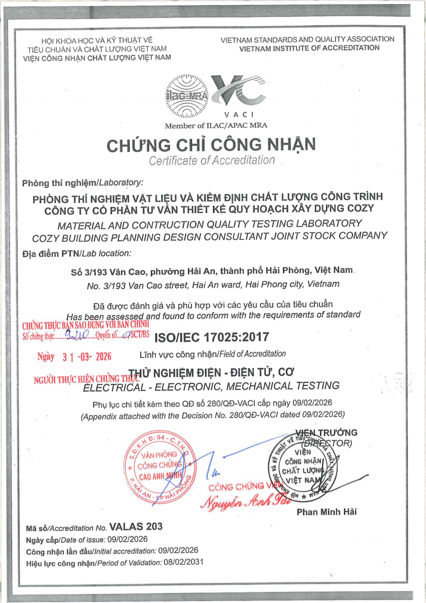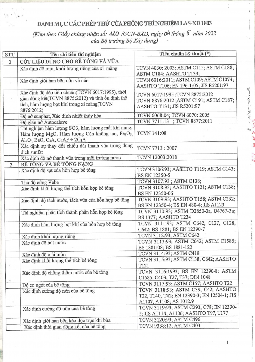Công bố thông tin về năng lực đủ điều kiện hoạt động thí nghiệm chuyên ngành xây dựng