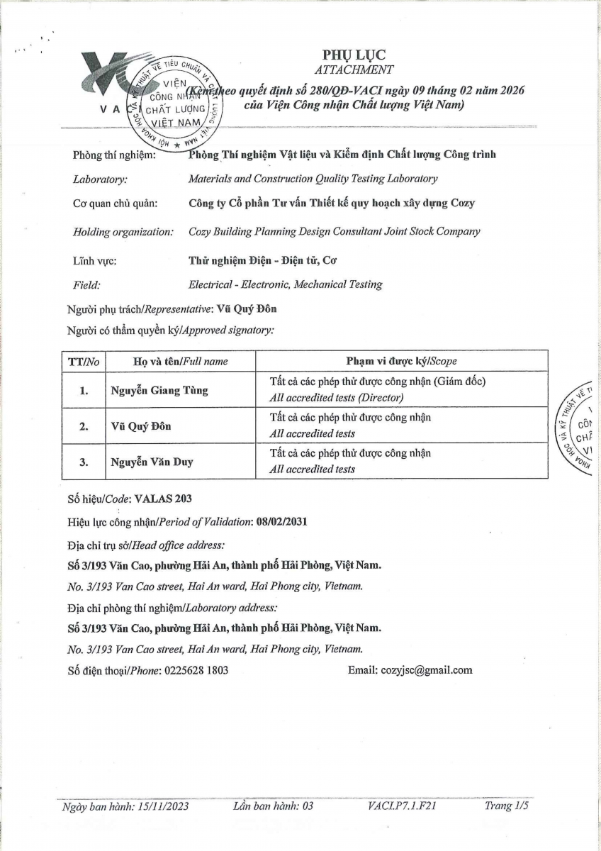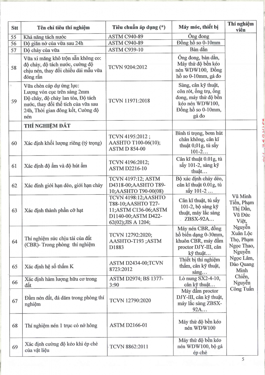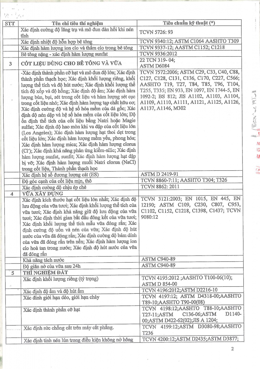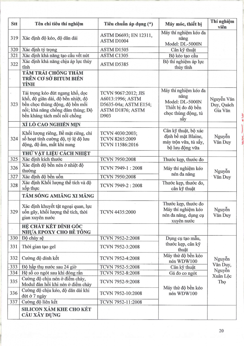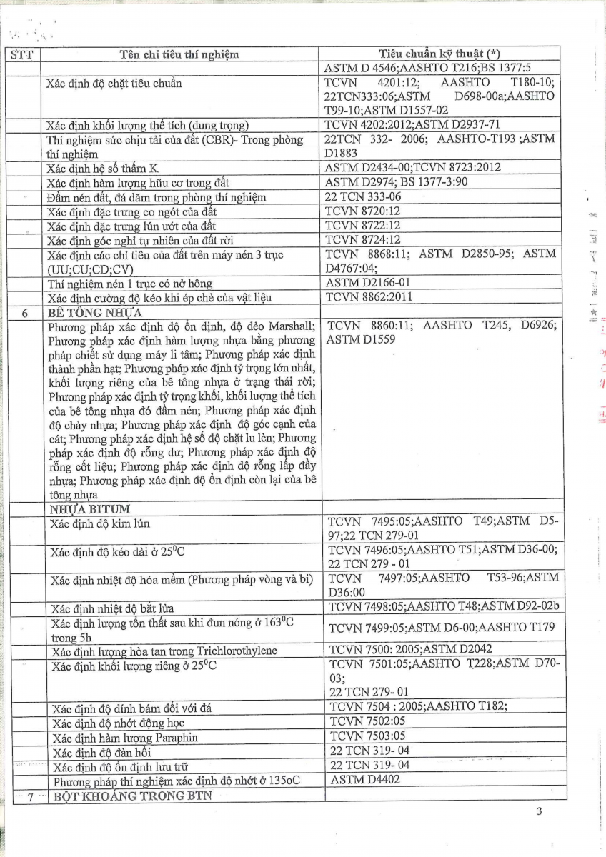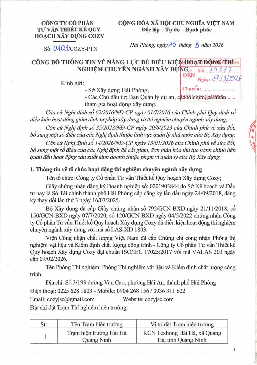 Công bố thông tin về năng lực đủ điều kiện hoạt động thí nghiệm chuyên ngành xây dựng