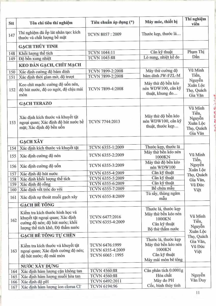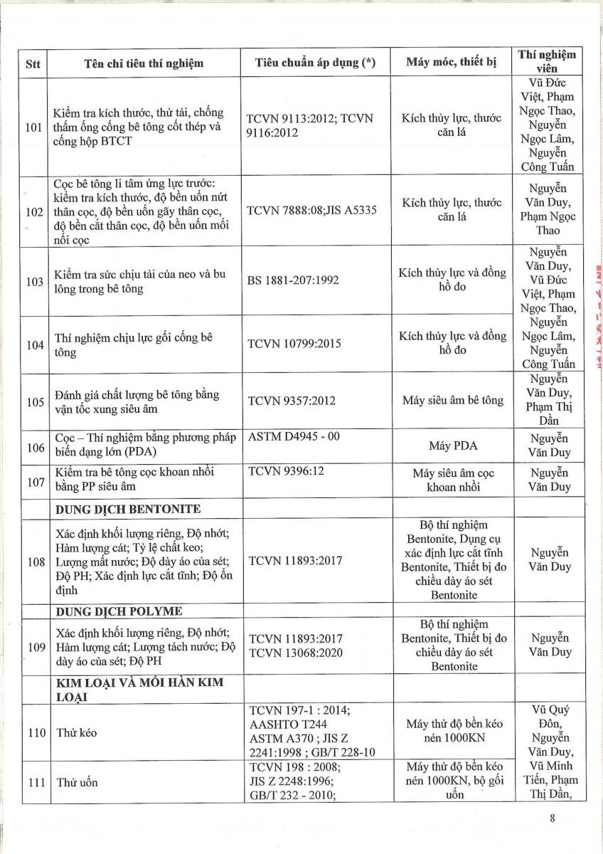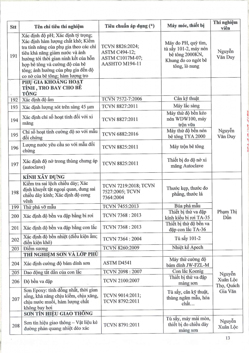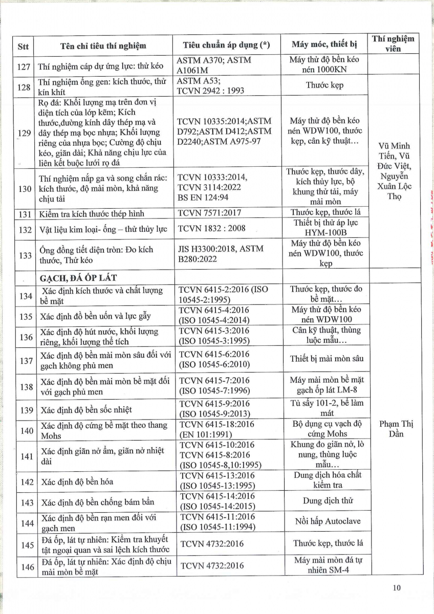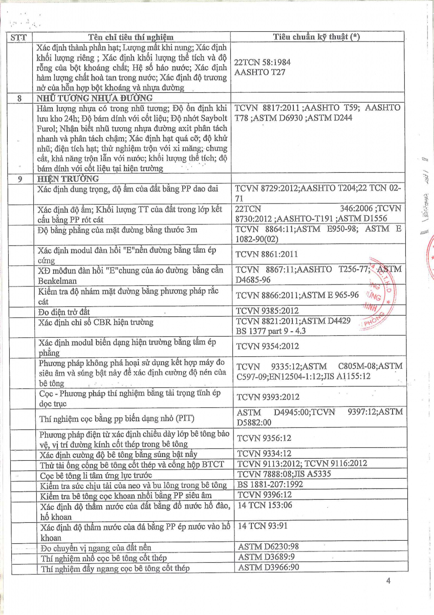 Công bố thông tin về năng lực đủ điều kiện hoạt động thí nghiệm chuyên ngành xây dựng