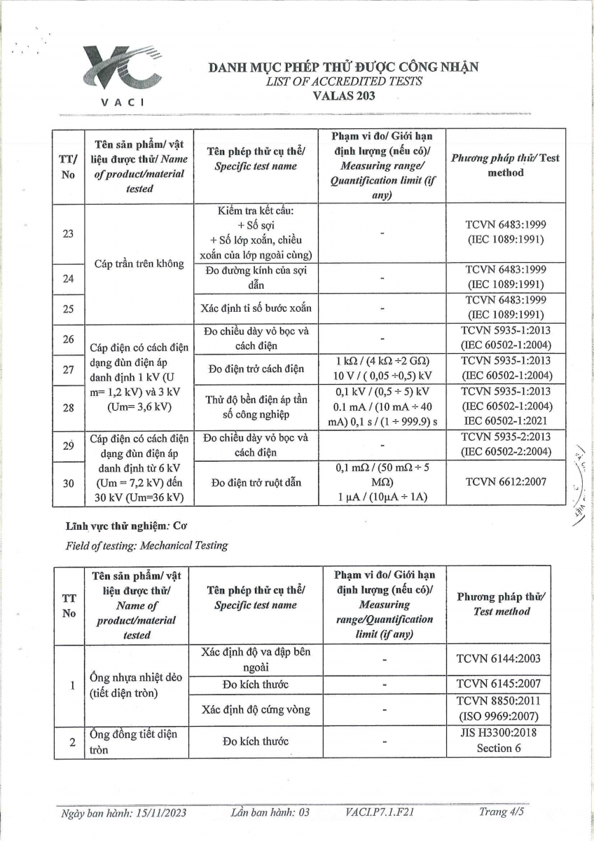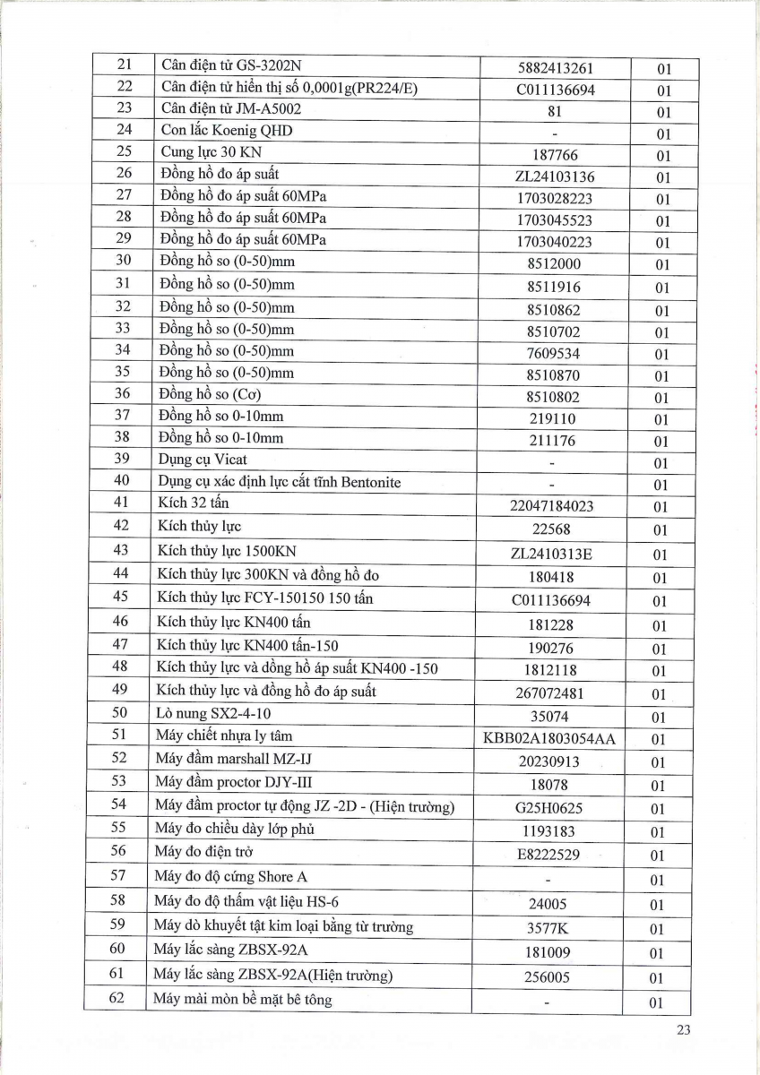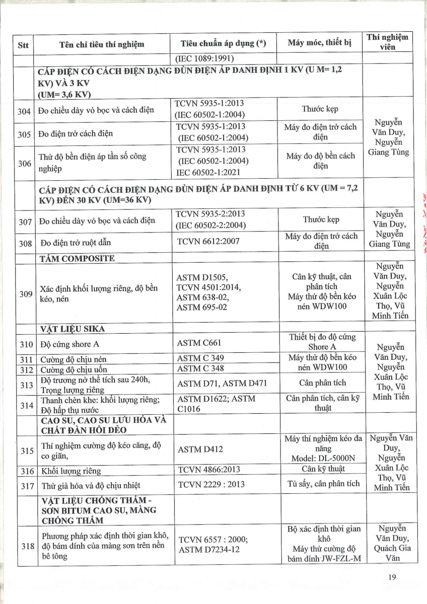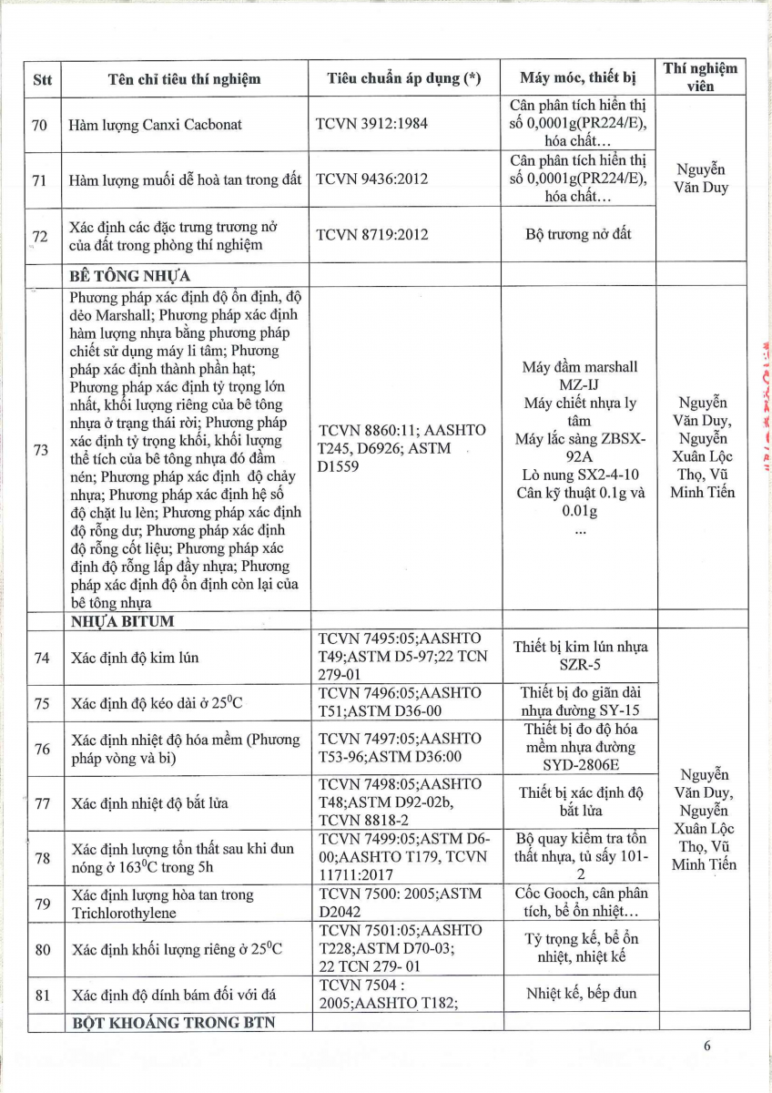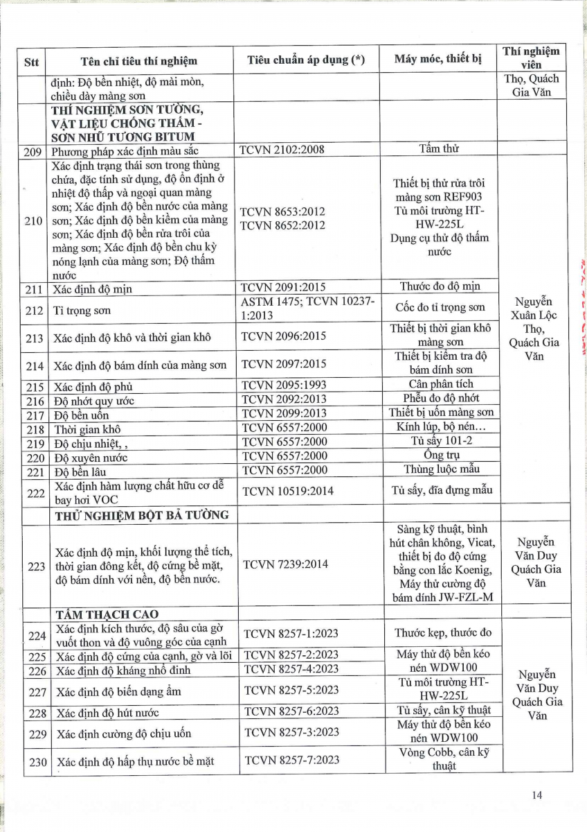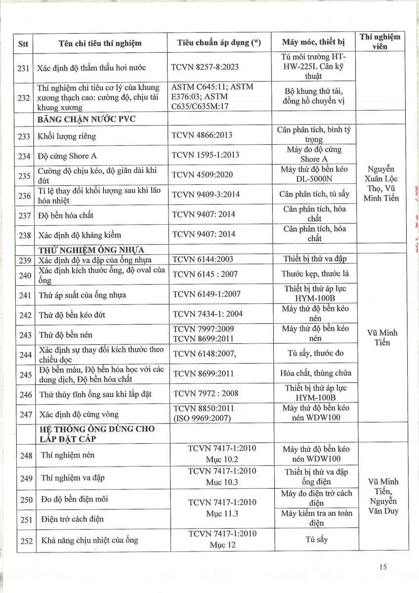 Công bố thông tin về năng lực đủ điều kiện hoạt động thí nghiệm chuyên ngành xây dựng